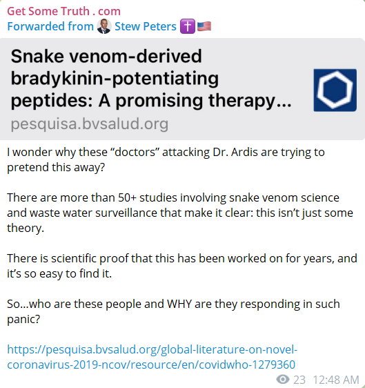 He recently appeared on the Stew Peters Network to discuss his theory of snake venom being the culprit behind COVID-19, and the injections.